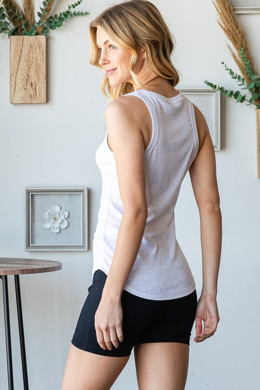 Ribbed Scoop Neck Sleeveless Tank - Ash Mocha