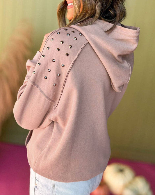 Solid Studded Raglan Sleeve Hoodie