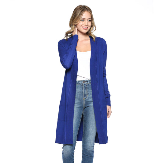 Textured Pocket Cardigan – Navy Blue Open-Front Sweater