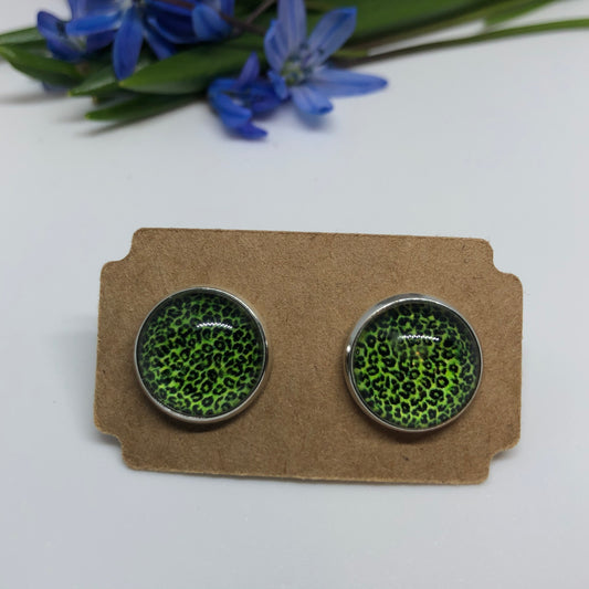 Druzy Stud Earrings - Green Animal Print - Last One - OneSize