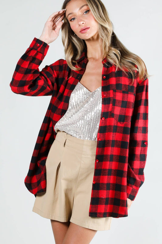 Long Sleeve Plaid Button Up - Red - Last One - Size Small