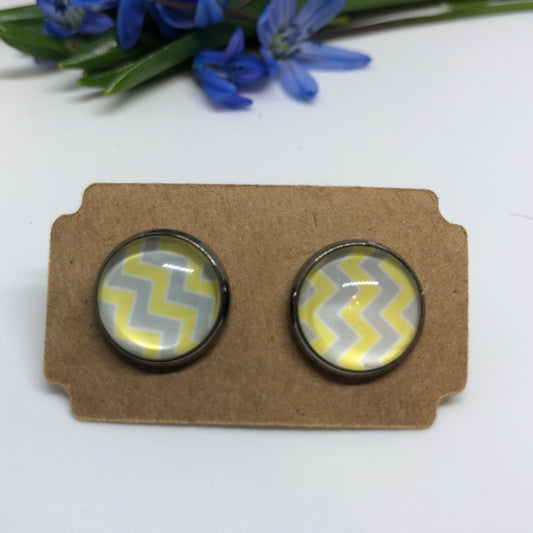 Druzy Stud Earrings - Yellow & Grey Chevron - Last One - OneSize