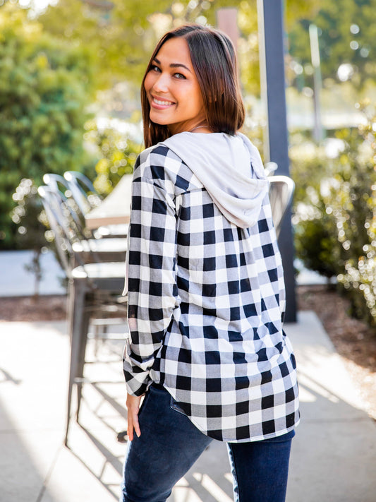 Plaid Gray Hooded Button Up - Last One - Size Medium