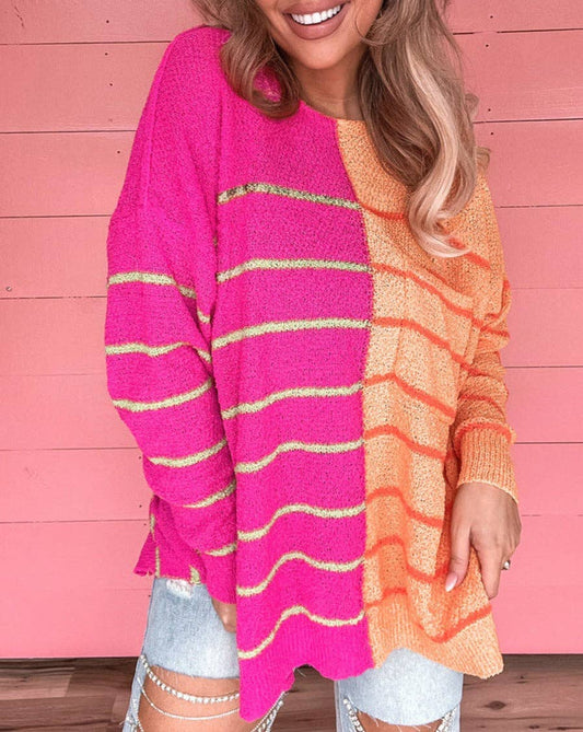 Stripe Colorblock Loose Knit Sweater - Last one - Size Small