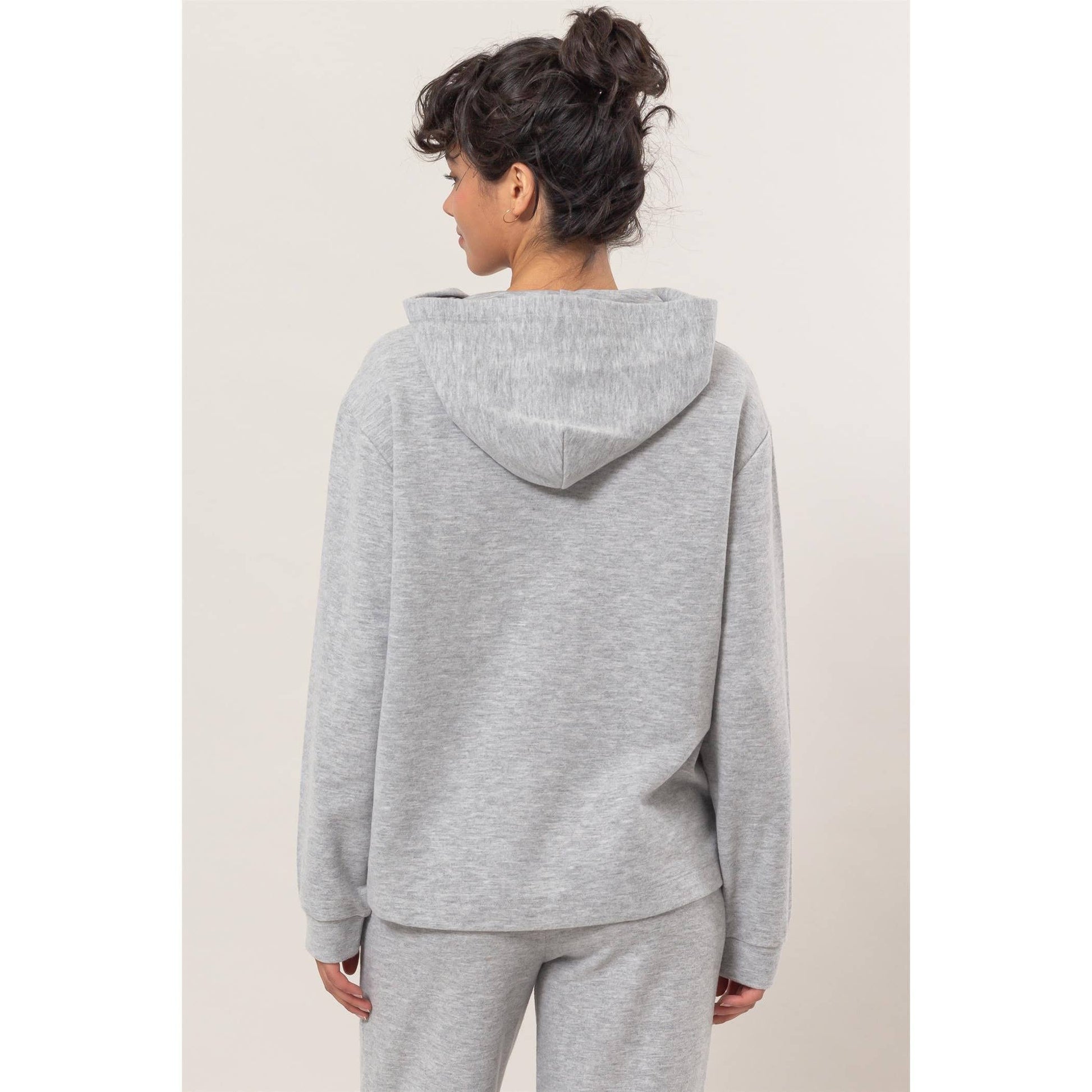Kick back in effortless style with this laid-back hoodie that's all about comfort and cool vibes. The roomy fit and dropped shoulders create that perfectly relaxed silhouette, while the cinched cuffs and cozy hood keep things snug. Crafted from a soft polyester-rayon blend, it's your go-to piece for lounging, running errands, or just embracing a slower pace. Pair it with matching sweats for the ultimate comfort outfit.