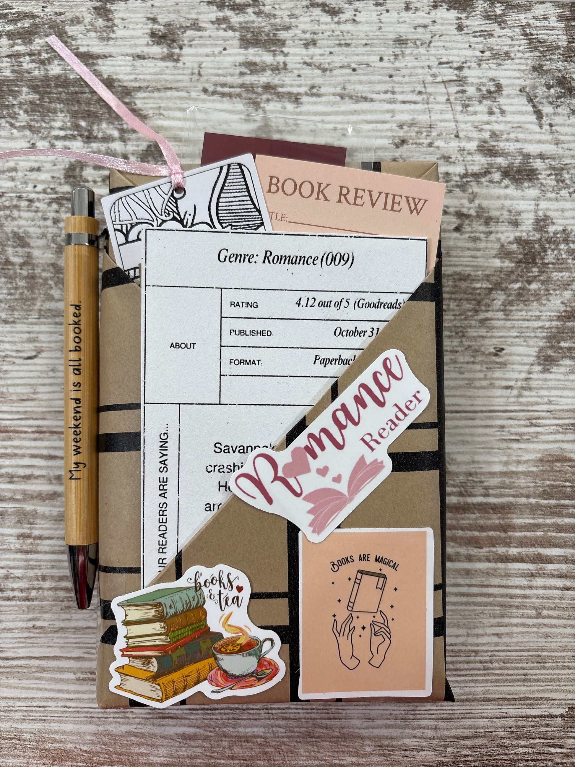 Included in Bundle: Pen, Mini Notebook, Mini Post Its, Book Review, Book Mark, Stickers